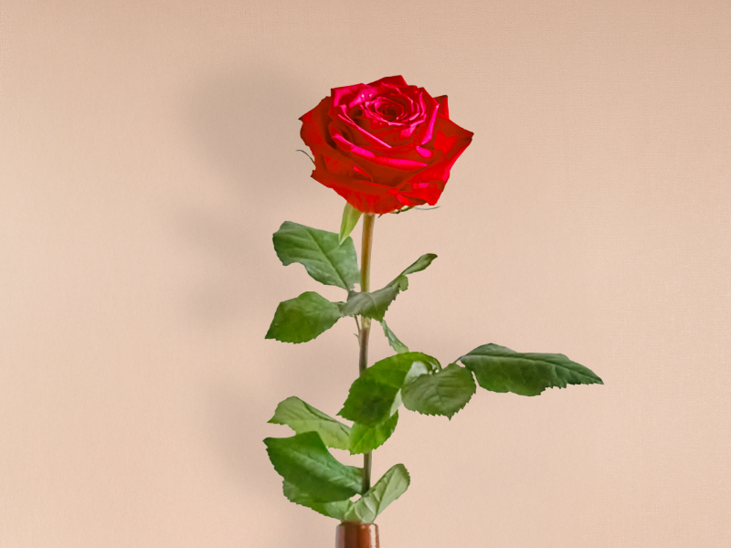Grootbloemige losse rode roos van minimaal 60 cm lang.