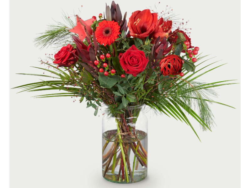 Boeket Carmelita – feestelijk rood winters boeket