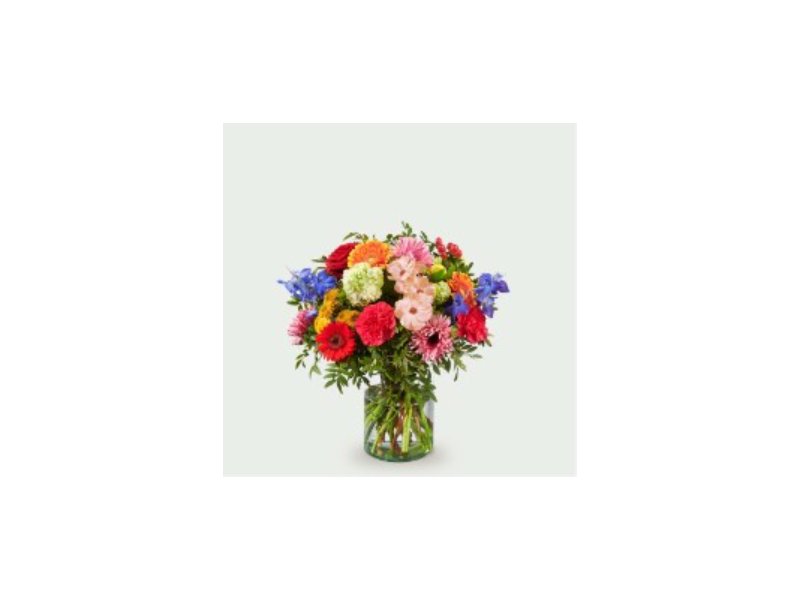 Boeket Milly is een rijk gevuld en kleurrijk boeket met een speelse mix van bloemen in warme en frisse tinten. De combinatie van verschillende structuren en kleuren zorgt voor een levendig en uitnodigend geheel.
