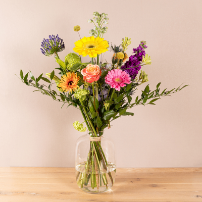 Boeket Leontien vrolijk gerbera en seizoensbloemen