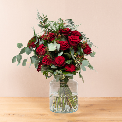 Boeket Natalie – luxe kerstboeket in rood