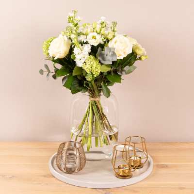 Boeket Sabine - Stijlvol wit met groen accenten